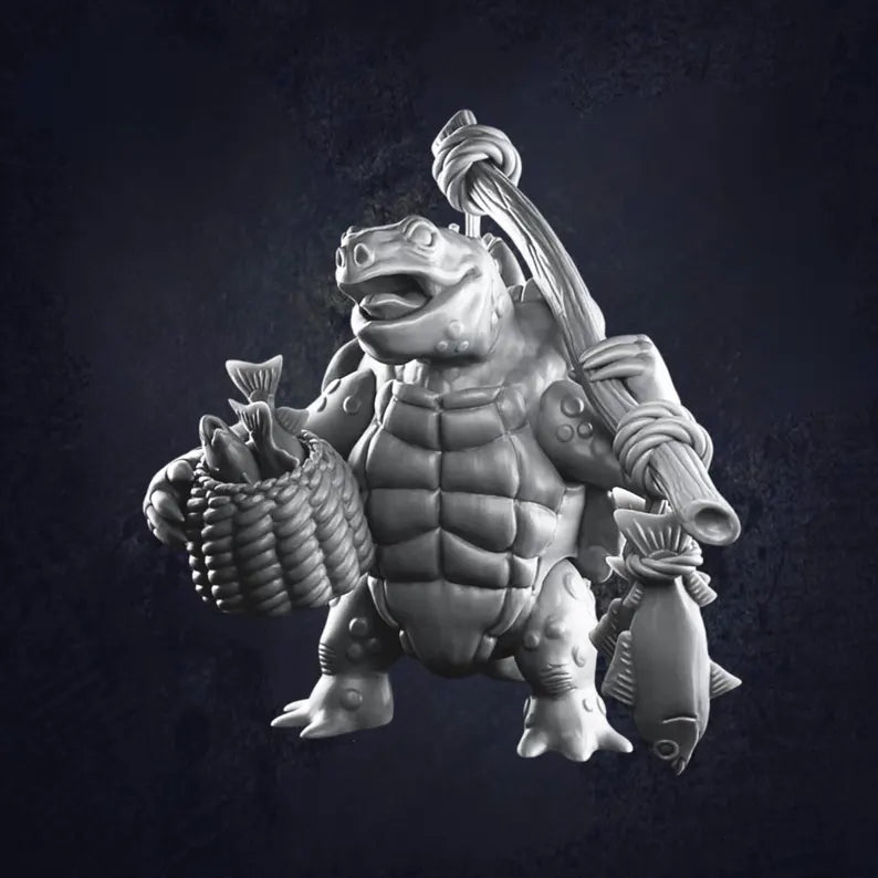 Bring coastal charm to your RPG sessions with this Fisherman Turtle miniature, ideal as a quirky village NPC, quest-giver, or seafaring guide in D&D and fantasy tabletop games.