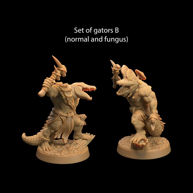 Gator Folk are reptilian fantasy miniatures for Dungeons & Dragons, Pathfinder, and tabletop RPG encounters. Perfect as swamp-dwelling warriors, tribal guardians, or marshland ambushers, these miniatures add danger and atmosphere to wetlands, river crossings, and jungle adventures.