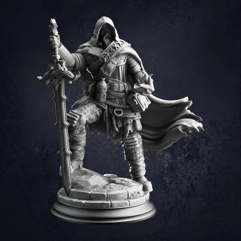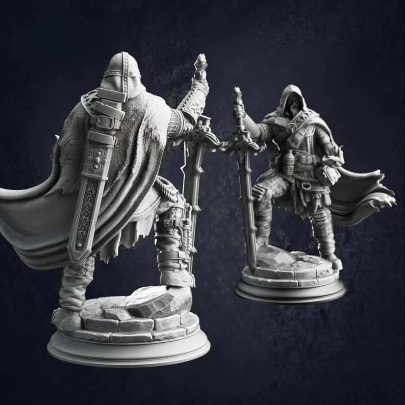 The Revenant of Vindication Ator is a detailed fantasy ranger miniature, ideal for use as a player character, NPC, or recurring antagonist in Dungeons & Dragons, Pathfinder, and other tabletop RPGs. Perfect for dark fantasy or plague-stricken campaign settings, this model suits revenge-driven storylines, undead or cursed characters, and grim wilderness encounters. A versatile miniature for dungeon masters looking to introduce a vengeful ranger, fallen hero, or boss-level enemy to their tabletop.