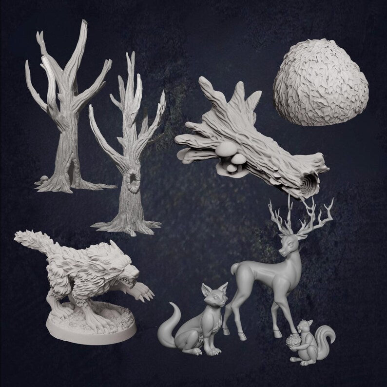 Bring your fantasy tabletop to life with this Woodland Starter Pack - a collection of RPG terrain and miniatures perfect for D&D, Pathfinder, wargaming, and immersive forest encounters. Ideal for building atmospheric battle maps, creature encounters, and scenic woodland settings in any fantasy RPG.